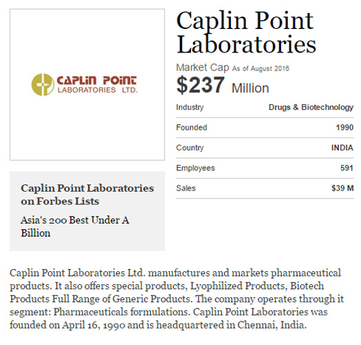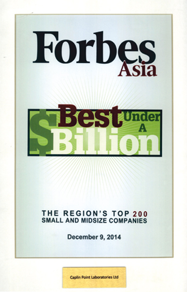 Caplin Point features in " Forbes Asia : Best Under a Billion " list for Three consecutive year